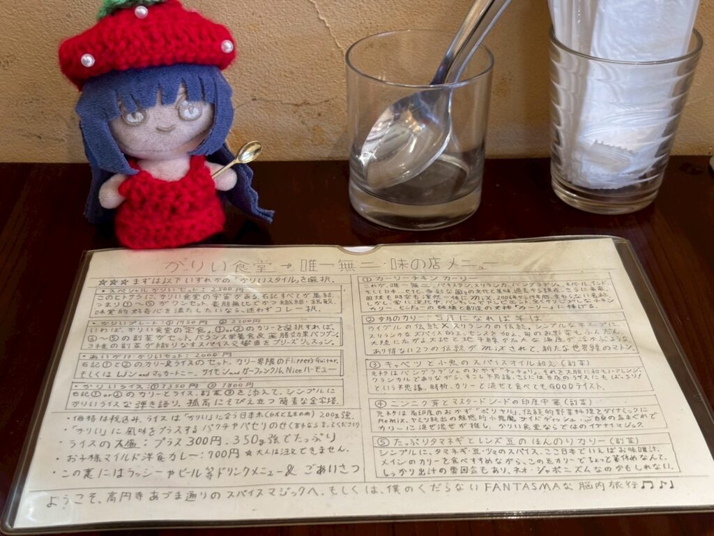 メニューも、こだわりが詰まった手書きで付け合わせやカレー毎の特長がわかりやすく記されていて、さらにワクワクします!
